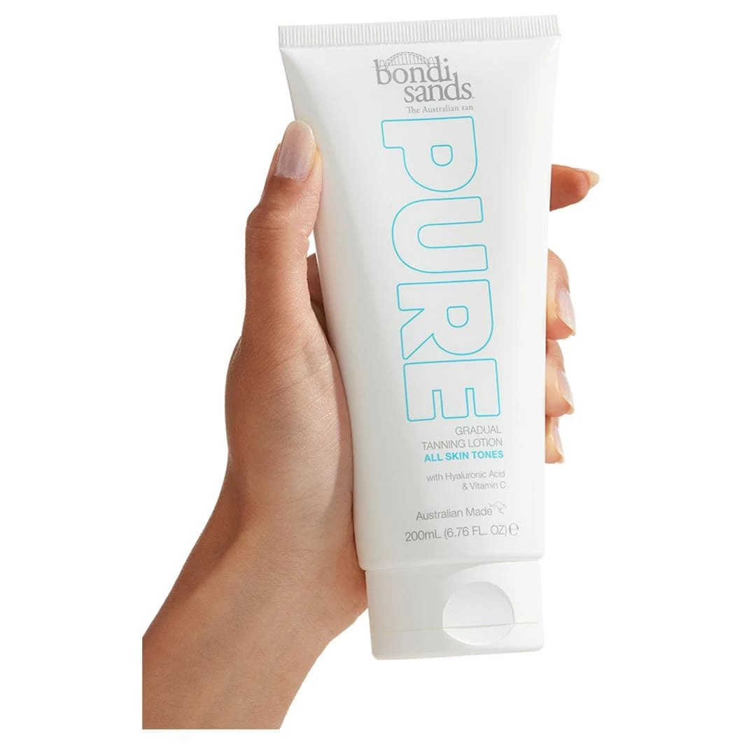 Bondi Sands Pure Gradual Tanning Lotion combineert een iconische goudbruine teint met huidvriendelijk hyaluronzuur voor hydratatie, vitamine C voor glans en vitamine E voor herstel. De kleurloze, parfumvrije formule bouwt de teint op, is gemakkelijk aan te brengen en zacht genoeg voor de gevoelige huid.