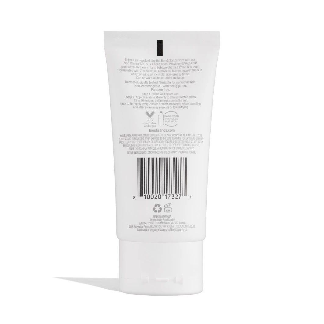 Bondi Sands Face Fluid Zinc Mineral SPF 50+ een minerale moisturiser voor het gezicht met SPF 50+ UVA- en UVB-bescherming. De lotion is geformuleerd met zink om als een fysieke barrière tegen de zon te fungeren en geeft tegelijkertijd een transparante, niet-vette finish. Perfect om onder make-up te worden aangebracht of als dagelijkse bescherming te gebruiken.