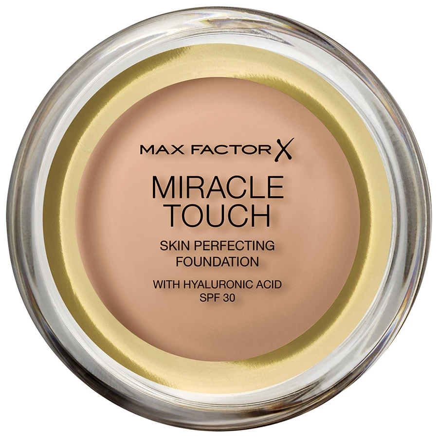 De Miracle Touch Foundation van Max Factor is hét beautyproduct voor een snelle en makkelijke opmaakroutine. Het is een concealer, foundation en poeder in één die je een frisse en egale huid geeft dankzij de unieke vast-naar-vloeibaar formule. Door de warmte van uw vingers wordt de vaste foundation vloeibaar en is daardoor eenvoudig aan te brengen. Hiernaast kunt u met de Miracle Touch een dun, lichtwicht resultaat creëren, maar de foundation ook gemakkelijk opbouwen naar een hogere dekking. De vernieuwde formule is verrijkt met hylaronzuur en spf 30 en zorgt voor ultieme hydratatie terwijl het risico van vroegtijdige veroudering van de huid door zonschade verminderd wordt.