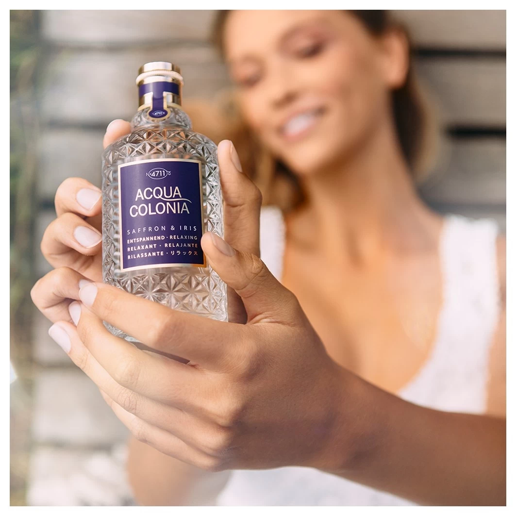 De Saffraan & Iris Eau de Cologne Spray uit de lijn 4711 Acqua Colonia bekoort als een ongewone, contrasterende geurcompositie. Net als de andere Acqua Colonia geuren, wordt het gepresenteerd in een Molanus fles in reliëf met een aantrekkelijke retro look. Het product is ontworpen als een Splash & Spray. De mooi vormgegeven omdoos is dan ook voorzien van een verstuiverpompje dat u naar believen kunt gebruiken om de geur te verstuiven.