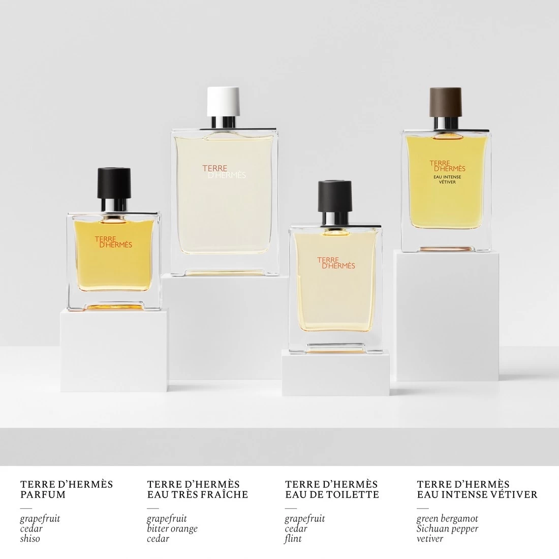 Het is de kracht van vetiver die mêleert met de levendigheid van szechuanpeper en groene bergamot. Een licht schokdempend gom omhult de flacon Terre d’Hermès.